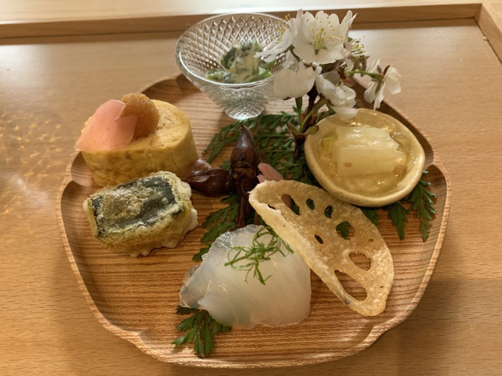 治部煮膳を注文しましたが、1品1品出てくるので、ゆっくりお庭を見ながらいただきました。