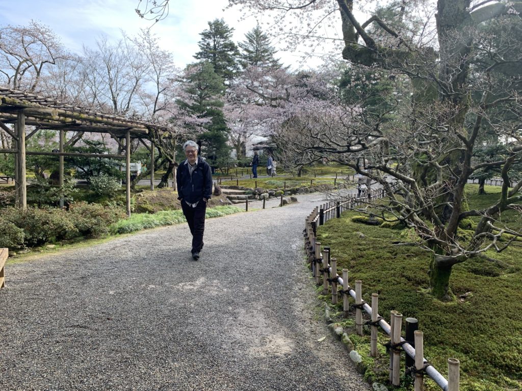 ちょうど桜が咲き始めた頃でしたが、たくさんの観光客がいらっしゃる前に朝一番のお散歩は兼六園を独り占めしたようで、とても気持ちの良い朝でした。