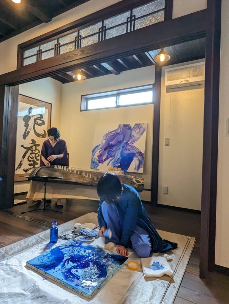 二十五絃箏コンサートxライブペインティング イベントを金沢一棟宿 海泉 海棟で行いました。